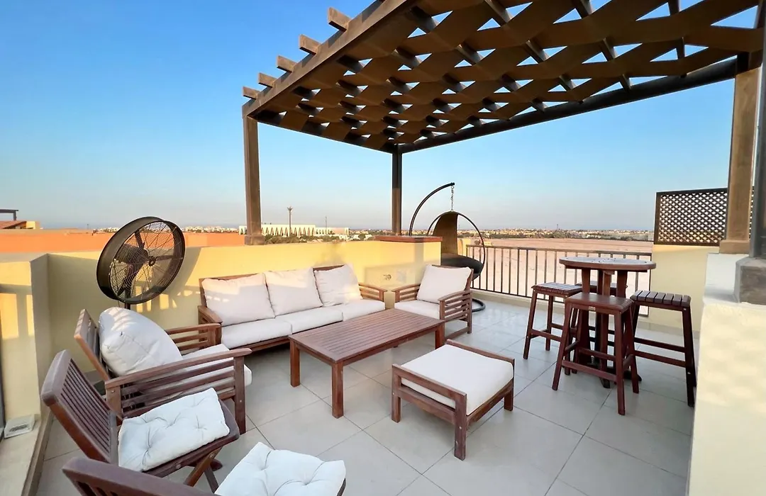 Situated approximately a 10-minute walk from Bibliotheca Alexandrina El Gouna, Eclectic 2 Bdr Twin House Tawila El Gouna Hurghada villa invites guests to relax at a terrace.